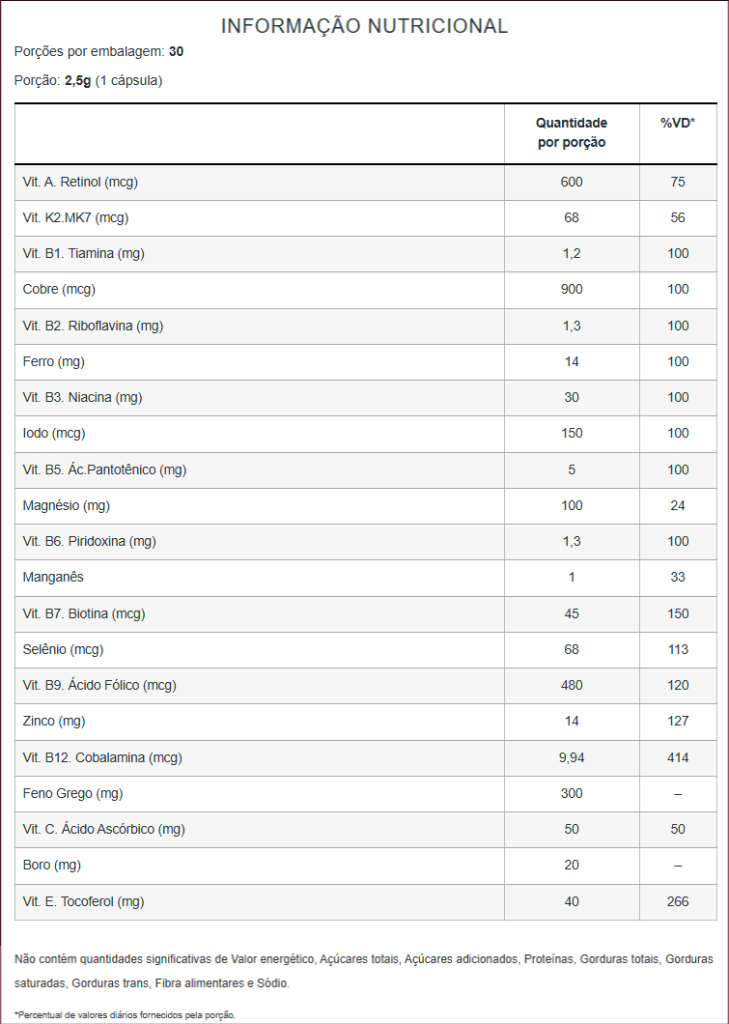Combinação de vitaminas essenciais que auxiliam no bom funcionamento do organismo, contribuindo para mais energia, vitalidade e suporte ao metabolismo. Também ajudam no fortalecimento da imunidade e equilíbrio nutricional.
